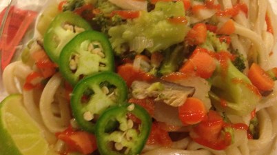 One package of Udon Japanese noodles Two tablespoon sesame oil 5 diced scallions One clove diced garlic One thinly diced carrot 4 cups chicken stock Two teaspoons soy sauce Two […]